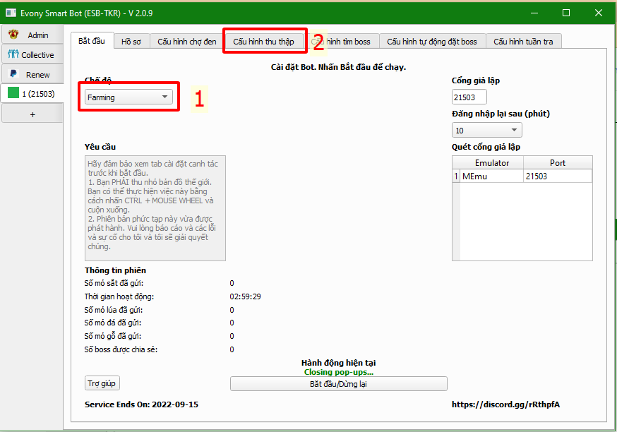 - Sau khi gửi tất cả line đi đào mỏ sẽ chuyển sang chế độ tìm kiếm boss chia sẻ lên liên minh.
